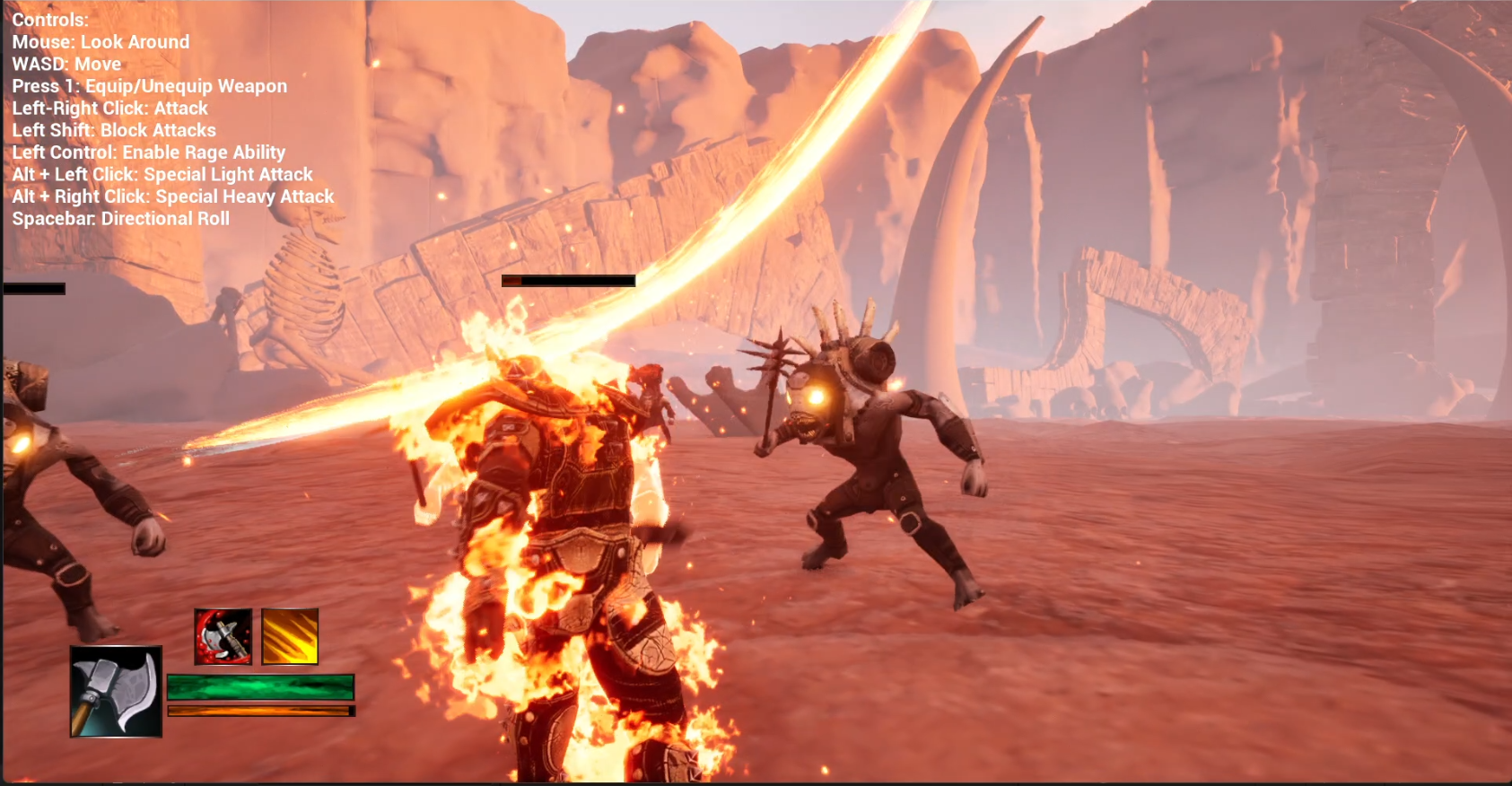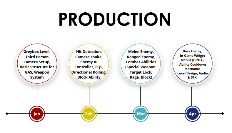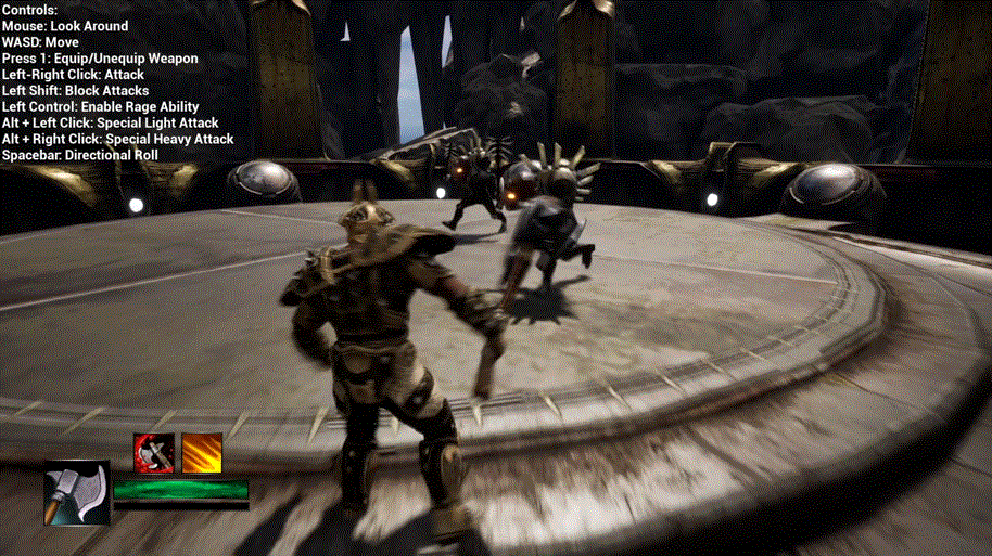 I designed special abilities including Rage, healing, and weapon-specific actions, backed by a stat system (Curve Tables, Data Assets, etc) tracking player and enemy attributes (health, attack/defense, Rage) for consistent balancing and tuning. This allowed moment-to-moment combat decisions to be influenced by build/state rather than hardcoded damage values.