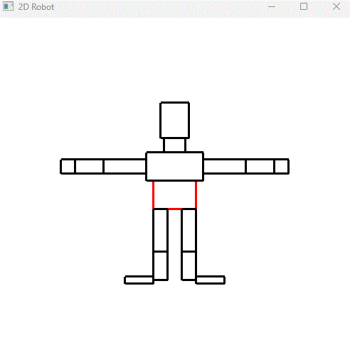 This is a 2D robot built in OpenGL and C++, I made as part of my Graphics Programming course. The robot has various pivots to move around using keyboard inputs and has basic rotation animation.